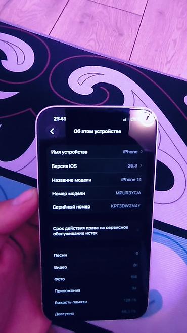 IPhone 14 🔥 📍Память - 128гб 📍АКБ - 79% 📍Не вскрытый , все родное 📍Face ID, True Tone 📍Состояние - Идеальное 💸Цена - 27000 сом 📍Отправляем по всем регионам КР🇰🇬 📍Trade In- Обмен есть 🤝 Для по...