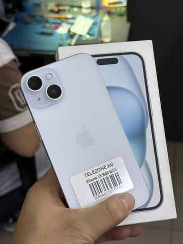 IPhone 15, Б/у, 128 ГБ, Голубой, Коробка, 83 %