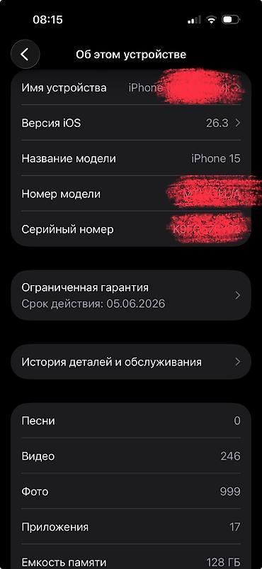📱 iPhone 15 — 128 ГБ 🎨 Цвет: чёрный 💰 Цена: 38 000 сомов Состояние — идеальное / очень хорошее 💯 🔋 Ёмкость аккумулятора: 89% — держит заряд отлично 📱 Экран родной, без замен ✔️ Полностью исправен...