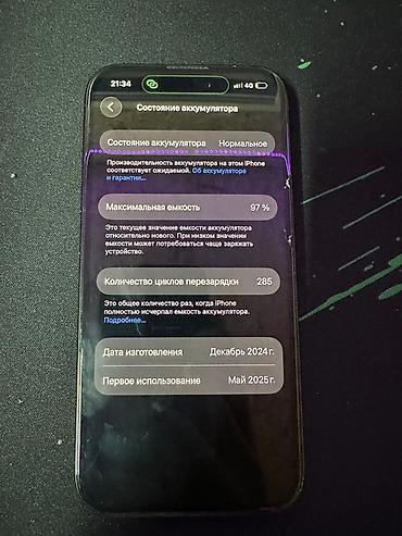 - Состояние аккумулятора в iOS: «Нормальное», максимальная ёмкость 97%.