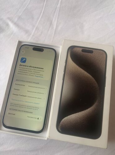 15 pro в титановом цвете, 128 ГБ аккумулятор 100%, количество циклов 183 на данный момент.
