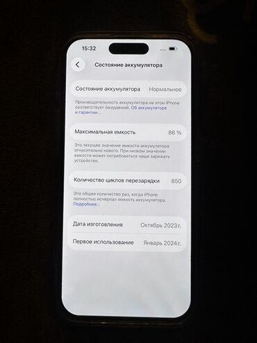 МАСЛО 10/10 с коробкой! IPhone 15 Pro, 128 ГБ Характеристики: - Модель: iPhone 15 Pro - Память: 128 ГБ - Цвет корпуса: темный (титан) АKB - Максимальная емкость: 86%