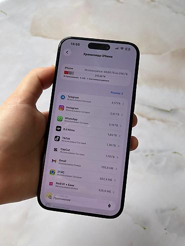 - Память 256 ГБ (на скриншоте «Хранилище iPhone»: используется ~40,7 ГБ из 256 ГБ).