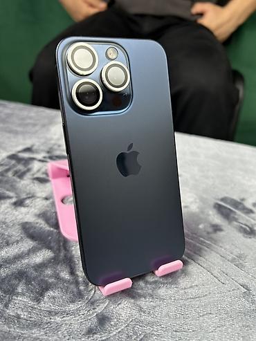 IPhone 15 Pro, Б/у, 256 ГБ, Синий, Зарядное устройство, Кабель, Чехол, 87 %