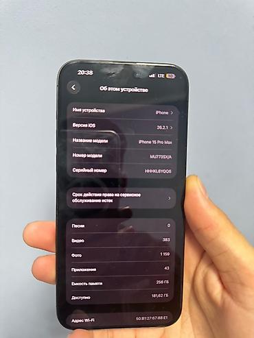 IPhone 15 Pro Max, 512 ГБ, цвет Black Titanium (на экране «Об этом устройстве»: модель MU7C3AA/A, iOS 16.3/26.3). Ключевые особенности: - Память 512 ГБ — достаточно для 4К‑видео, фото в ProRAW и ...