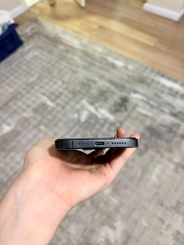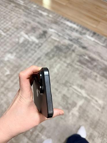 IPhone 15 Pro, цвет Black/Titanium (чёрный). Смартфон с корпусом из титана и плоскими гранями, матовое стекло на задней панели. Экран 6.1" с вырезом Dynamic Island. На нижней кромке — разъём USB‑C, стереодинамики и микрофон.