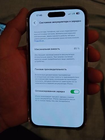 - Аккумулятор: максимальная ёмкость 85% (скрин “Состояние аккумулятора и зарядка”); включена “Оптимизированная зарядка”