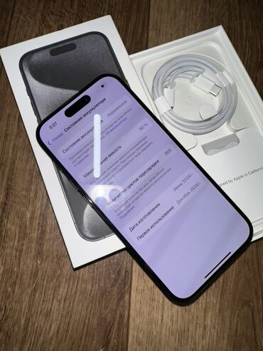 IPhone 15 Pro, Б/у, 256 ГБ, Black Titanium, Коробка, 90 %