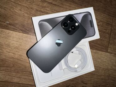 IPhone 15 Pro (цвет: чёрный/Black Titanium), комплект из коробки.