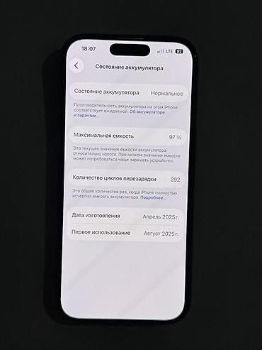 - Аккумулятор: максимальная ёмкость 97%, количество циклов 292 (по скриншоту «Состояние аккумулятора»).