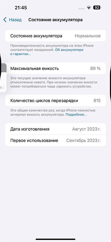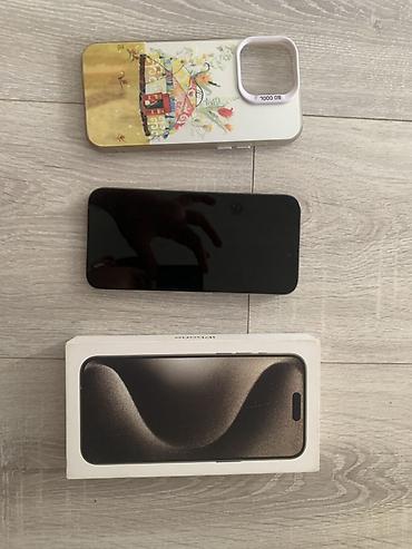 IPhone 15 Pro Max, Б/у, 1 ТБ, Black Titanium, Наушники, Зарядное устройство, Защитное стекло, В рассрочку, 100 %