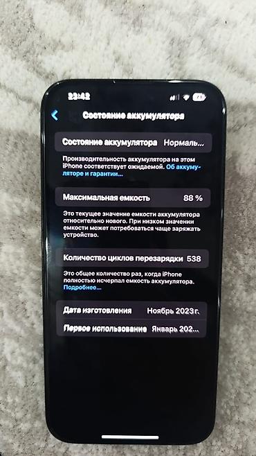 IPhone 15 Pro Max, 256 ГБ AKB: 85% родной телефон не вскрытый Срочно деньги нужны 🔥 - Модель: iPhone 15 Pro Max (номер модели MU773KH/A) - Цвет: темный (титан/чёрный), матовый корпус - Память: 256...