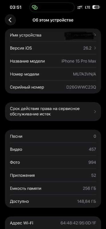 Память: 256 ГБ (доступно ~148,84 ГБ)