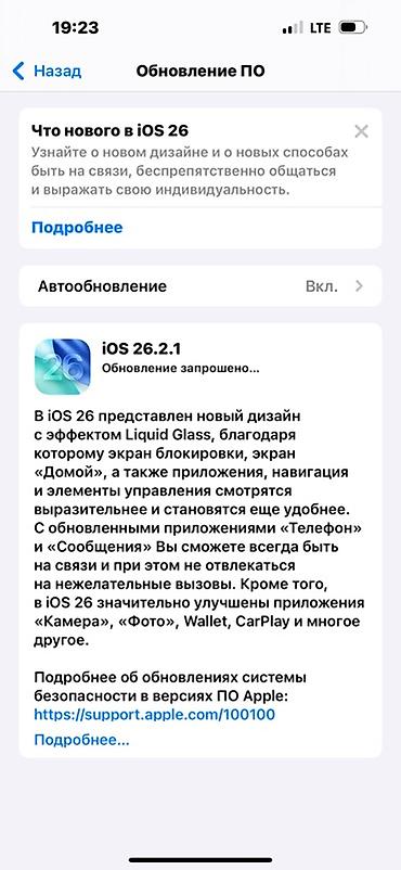 - iOS: 18.6.2, доступно обновление до iOS 26.2.1