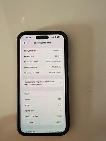 IPhone 15 Pro Max, 256 ГБ, цвет синий/сине‑черный (Titanium Blue). Характеристики и детали: - Экран 6.7", Dynamic Island, всегда включенный дисплей. - Модель: iPhone 15 Pro Max (показано в настро...