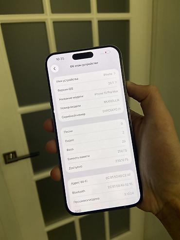 IPhone 16 Pro Max, модель A2935, цвет Desert Titanium, 256 ГБ Комплектация и маркировка по коробке: - Объём памяти: 256 GB - Цвет: Desert Titanium - Модель: A2935 - Порт: USB‑C - Указаны серийный ...