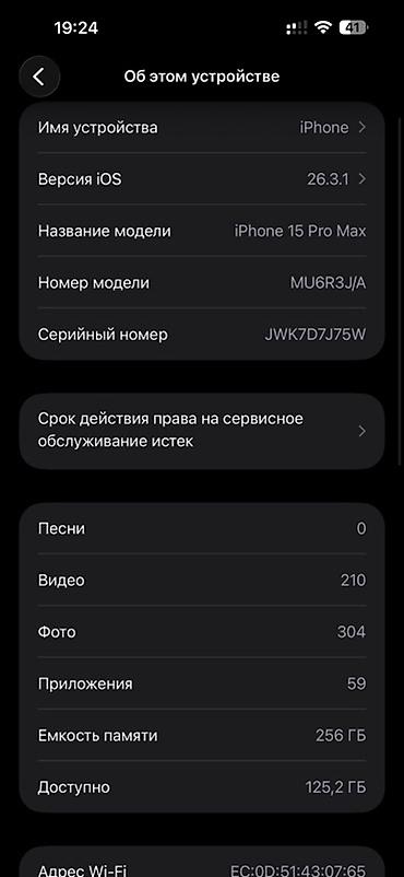 - Память: 256 ГБ (доступно ~125 ГБ по состоянию на скриншот)
