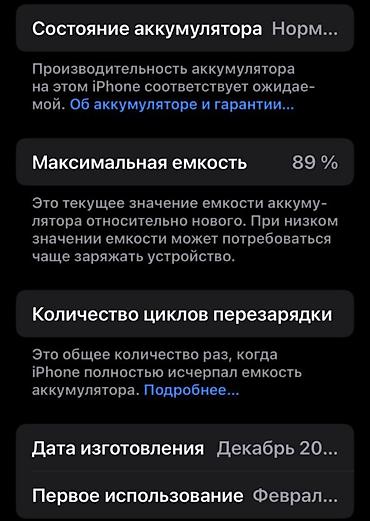 - Состояние аккумулятора по iOS: максимальная ёмкость 89%.