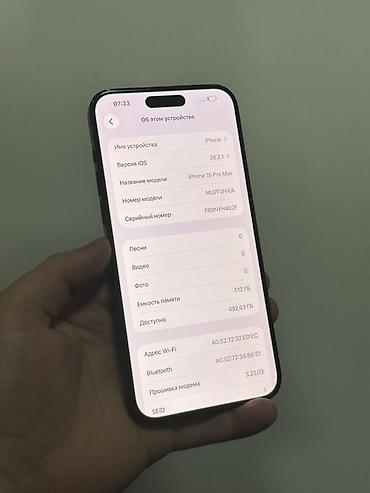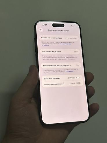 - Наклейка на корпусе: «15Pro Max 512Gb 85%» — уровень ёмкости аккумулятора 85%