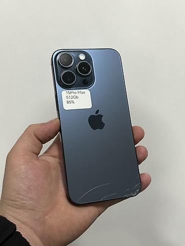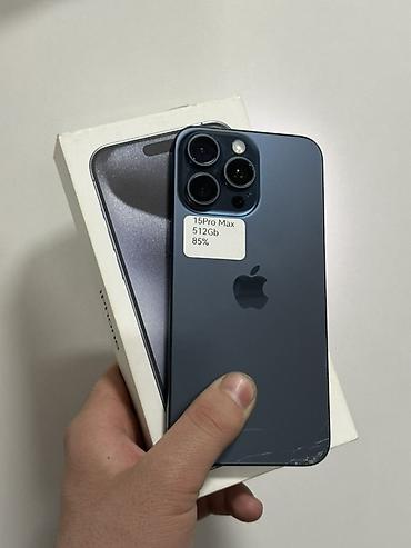 IPhone 15 Pro Max, Б/у, 512 ГБ, Синий, Зарядное устройство, Чехол, Коробка, 89 %