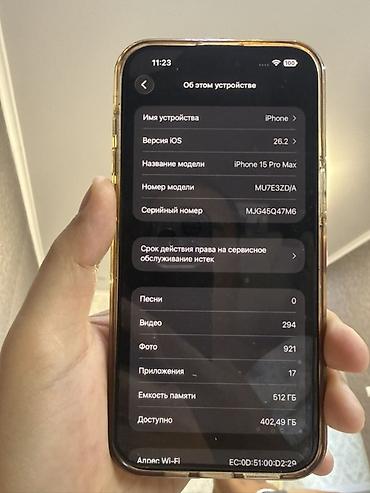 - Модель: iPhone 15 Pro Max (номер модели MU7E3ZD/A, серийный MJG45Q47M6)