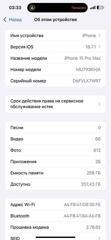 - Модель: iPhone 15 Pro Max (номер модели MU793KH/A)