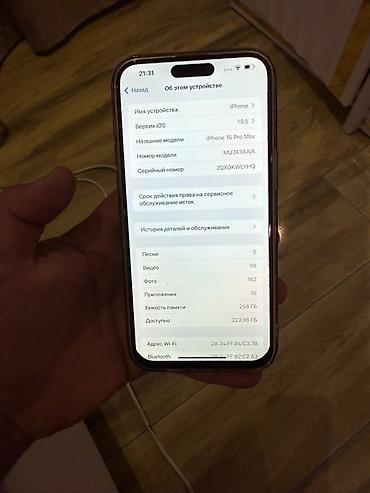 15 Pro Max Американец на 2 e-sim На 256 ГБ Face ID работает четко True Tone работает iCloud чистый Торг имеется (Разумный) Экран меняли по гарантии, в Америке Рассрочка тоже есть только по Zer...