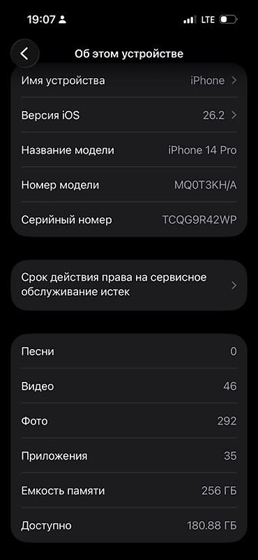 IPhone 14 Pro, Б/у, 256 ГБ, Черный, Чехол, Защитное стекло, 82 %