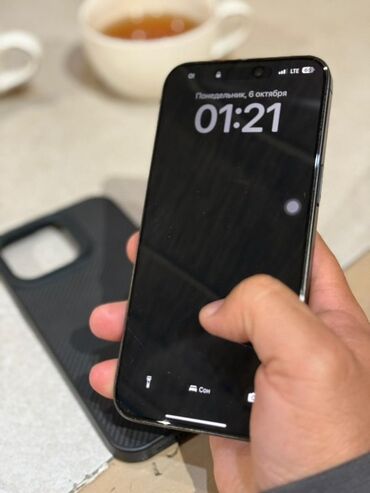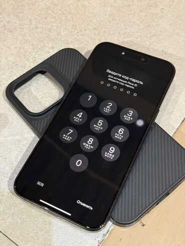 - Дисплей с узкими рамками и Dynamic Island; на экране — интерфейс ввода кода и Always‑On