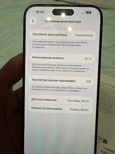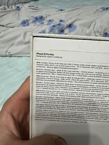 IPhone 15 Pro Max, цвет Blue Titanium. В комплекте коробка и кабель USB‑C (по маркировке на коробке). Телефон из Калифорнии всё работает