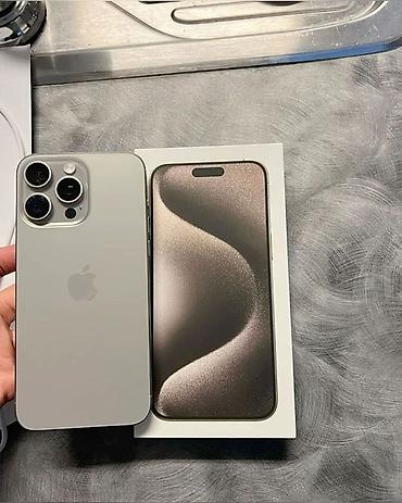 Продаю iPhone 15 Pro Max 256 ГБ. Цвет: натуральный титан. Состояние на 5 из 5. Аккумулятор 86%. Полный комплект: чехол и зарядка. Цена 70000 сом.
