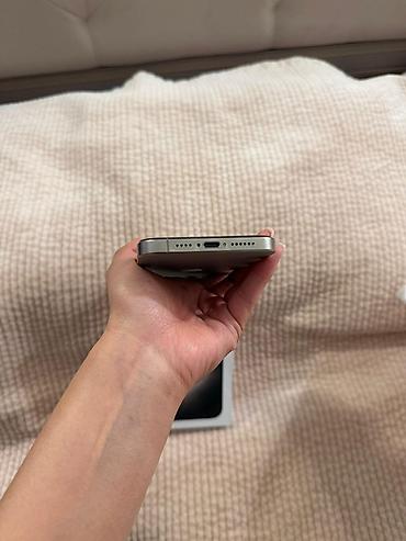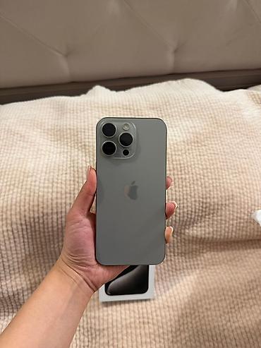 Продаю iPhone 15 Pro Max 256 ГБ. Цвет: натуральный титан. Состояние на 5 из 5. Аккумулятор 86%. Полный комплект: чехол и зарядка. Цена 70000 сом.