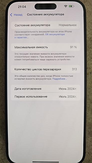 📱 iPhone 15 — 128 ГБ 🎨 Цвет: чёрный 💰 Цена: 38 000 сомов Состояние — идеальное / очень хорошее 💯 🔋 Ёмкость аккумулятора: 89% — держит заряд отлично 📱 Экран родной, без замен ✔️ Полностью исправен...