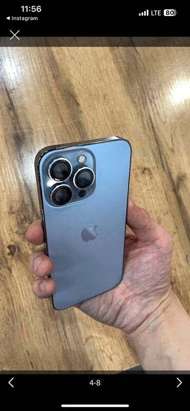 - Синий корпус, тройной блок камер, передний экран с вырезом Dynamic Island.