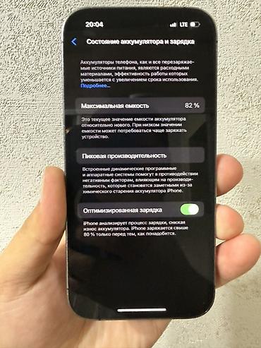 - Аккумулятор: максимальная ёмкость в настройках — 82%, включена оптимизированная зарядка (на скриншоте).