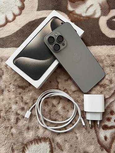 IPhone 15 Pro Max, Б/у, 256 ГБ, Natural Titanium, Защитное стекло, Чехол, Коробка, 89 %