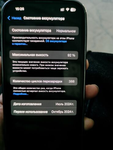 Продам IPhone 16 Pro Max, Black Titanium, 100 % АМЕРИКАНЕЦ в отличном состоянии Аккумулятор - Максимальная ёмкость: 100% - Количество циклов перезарядки: 132 - Дата изготовления аккумулятора: март ...