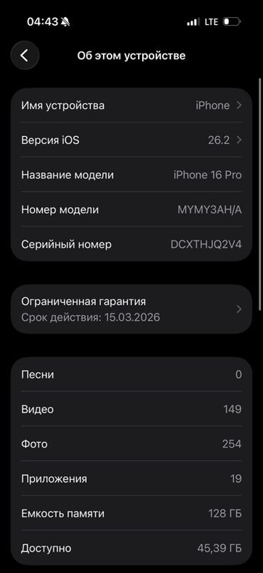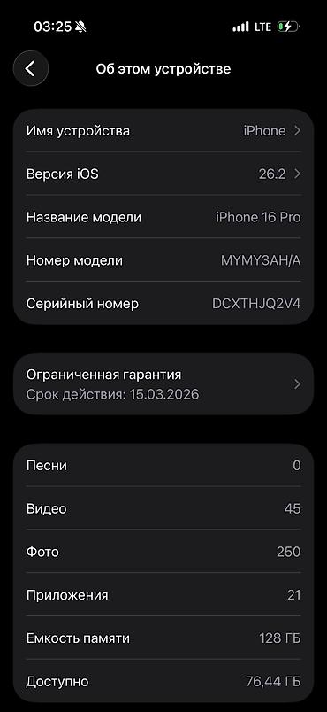 - Модель: iPhone 16 Pro (номер модели Mymy3AN/A указан на скриншоте)