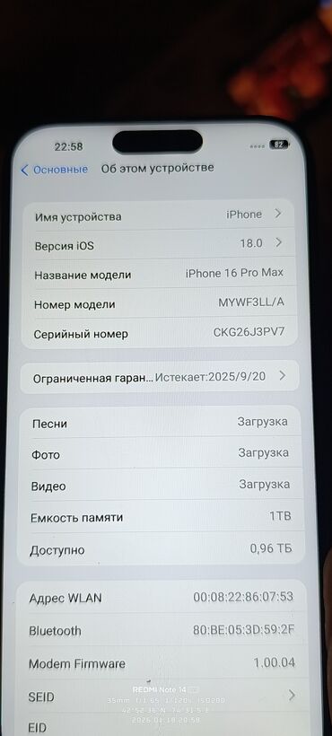 - Модель: iPhone 16 Pro Max (номер модели MYWF3LL/A)