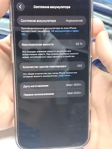 Дополнительно: указано «16 pro maks зарядник бар стекло бар. Акбь 92%».