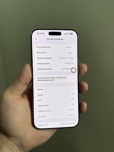IPhone 16 Pro Max, модель A2935, цвет Desert Titanium, 256 ГБ Комплектация и маркировка по коробке: - Объём памяти: 256 GB - Цвет: Desert Titanium - Модель: A2935 - Порт: USB‑C - Указаны серийный ...
