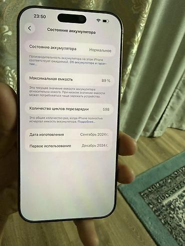 - Аккумулятор: максимальная ёмкость 89%, количество циклов перезарядки 598; состояние «Нормальное».