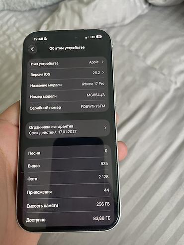 - Память: 256 ГБ, доступно ~83,88 ГБ
