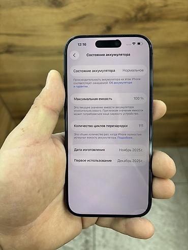 - В меню «Состояние аккумулятора» — нормальное; дата изготовления на экране: ноябрь 2025 г., первое использование: декабрь 2025 г.