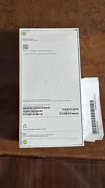 IPhone 17 Pro Max, Новый, 256 ГБ, Серебристый, Кабель, В рассрочку