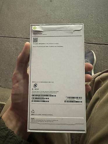IPhone 17 Pro Max, АКБ 100%, Есим, цикл 99, каробка и зарядка имеется, модель A3255, цвет синий (на коробке Deep Sky). Официальная упаковка Apple с маркировкой и серийными номерами на стикерах.
