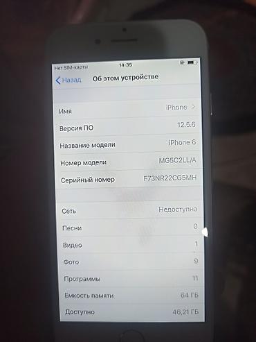 - Память: 64 ГБ, доступно около 46,21 ГБ