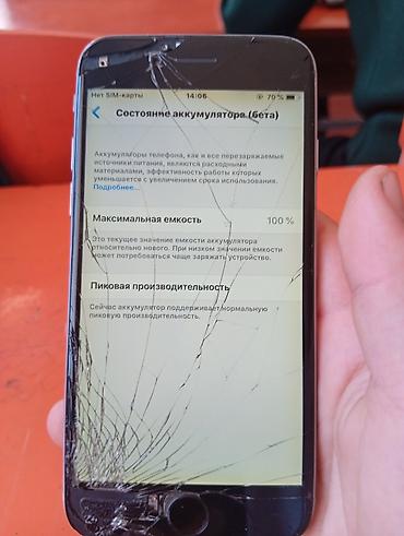 - Экран 4.7". На фото видно разбитое стекло; сенсор и дисплей работают, кнопка «Домой» с Touch ID на месте.