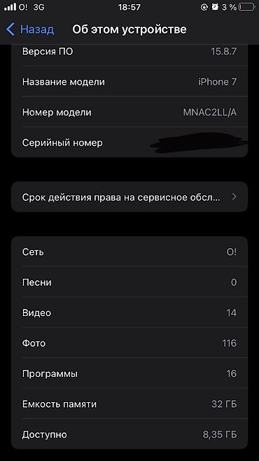 !!!!!Обмен бар !!!!IPhone 7, 128 ГБ, цвет Black Характеристики и особенности: - Память: 128 ГБ (на скриншоте — «Используется 19.9 ГБ из 128 ГБ»). - Экран 4.7", кнопка Home с Touch ID. - Камера: ос...