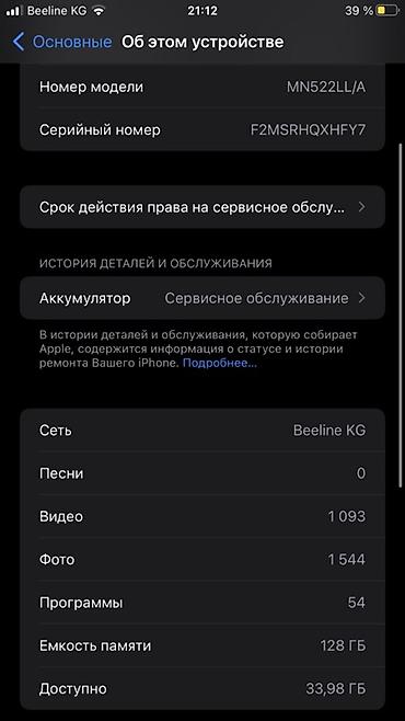 - Встроенная память занята медиаконтентом и приложениями (на скриншоте: 0 песен, 1093 видео, 1544 фото, 54 программы)